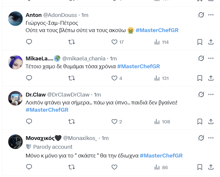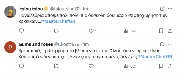 Για πολύ γερά νεύρα ήταν το χθεσινό επεισόδιο του MasterChef όχι μόνο για την ένταση που είχε, αλλά για την τοξικότητα, την αγένεια και τις προσβολές ορισμένων παικτών, που πλέον δεν αντέχονται. Ελπίζαμε πως τη φετινή χρονιά που έχουμε και πολύ αξιόλογες προσωπικότητες, να μην ζήσουμε overdose τοξικότητας όπως την περσινή χρονιά.