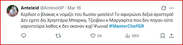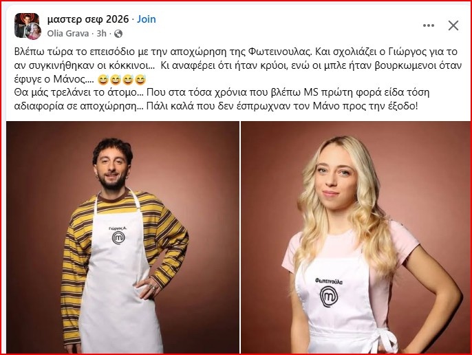 Προς το παρόν όμως δεν υπάρχουν άλλες πληροφορίες για αυτές τις αποχωρήσεις, αλλά αν ισχύουν τότε σημαίνει πως μόνο ο Πέτρος από τα φαβορί των μπλε και από την κατηγορία των καλών σεφ, έχει προχωρήσει. Ενδεχομένως και η Wasan γιατί και για εκείνη υπάρχουν spoilers πως έχει καταφέρει να παραμείνει στον διαγωνισμό.
