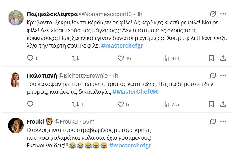Η εβδομάδα θρίλερ του διαγωνισμού ξεκίνησε με 20 δηλώσεις γκρίνιας από τον Γιώργο Αχλαδιώτη και την κατάταξη του MasterChef που περιελάμβανε εκπλήξεις.