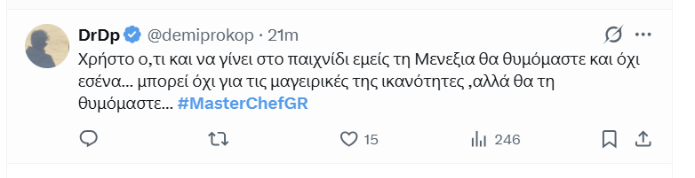 Ο Τάσος συνέχισε με black χιούμορ και στο Χ αντέδρασαν και δικαιολογημένα. Η Μενεξιά μπορεί να είναι ερασιτέχνης και άπειρη, αλλά ποτέ δεν ενόχλησε συμπαίκτη της με τη συμπεριφορά της ή τα σχόλιά της. Στοχοποιείται και εκείνη ως αδύναμη όπως η Wasan.
