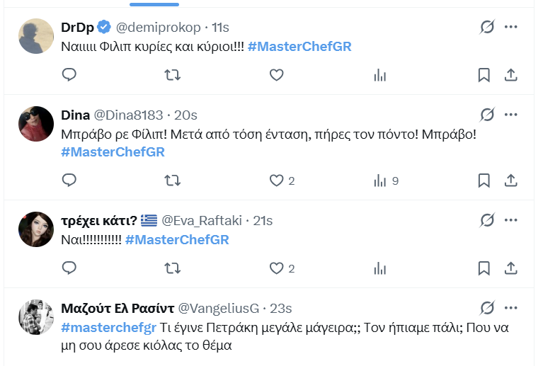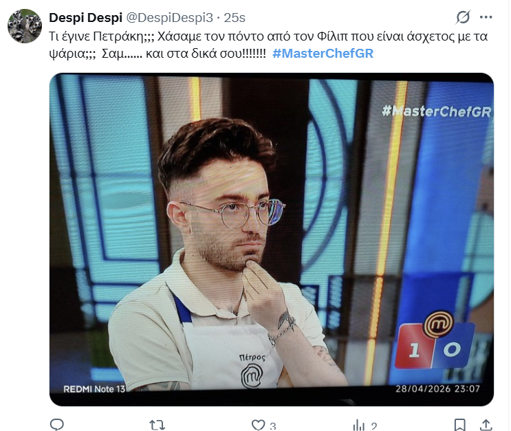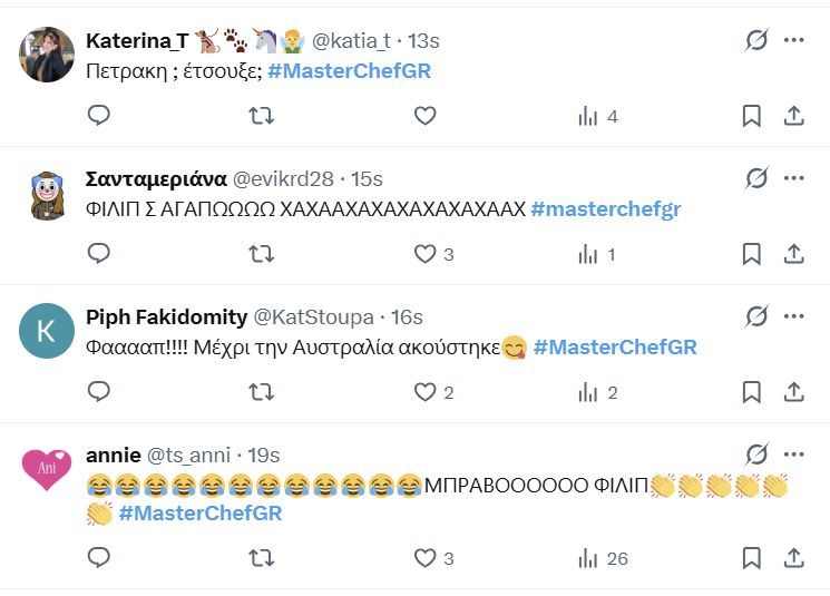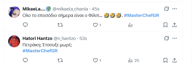 Εξαιρετικά ήταν και τα πιάτα του Πάνου, του Μιχάλη και του Χάρη. Ο τελευταίος γκρίνιαξε για την ήττα του.