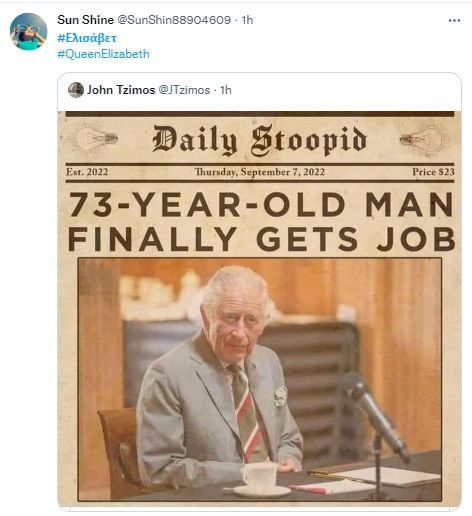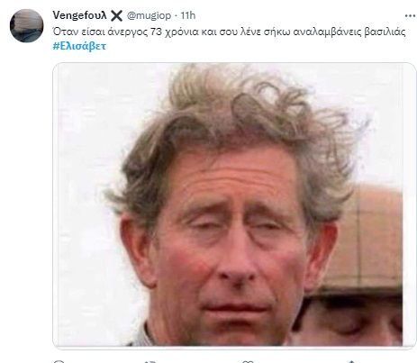 Κάποιοι, στο άκουσμα των νέων του θανάτου της βασίλισσας Ελισάβετ Β’, απέκτησαν ανανεωμένη έμπνευση για αστεία σχόλια. Η ηλικία της βασίλισσας που βρισκόταν «στο άνθος της», η Ζωζώ Σαπουντζάκη που τη «νίκησε», η Meghan Markle που πανηγυρίζει με κάθε πιθανό τρόπο και παρομοιάζεται με την Κορίνα από τα Εγκλήματα, καθώς και ο άνεργος -βασιλιάς πλέον- Κάρολος που ξαφνικά βρήκε δουλειά στα 73 του, βρέθηκαν στο επίκεντρο των σχολίων.