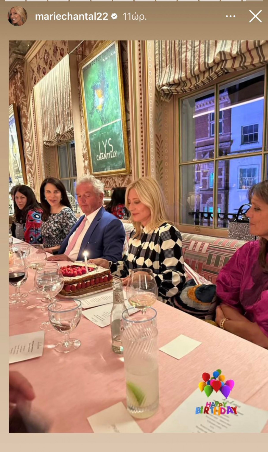 H 55χρονη μοιράστηκε με τους διαδικτυακούς της φίλους μια φωτογραφία από το γεύμα που παρέθεσε σε αγαπημένα πρόσωπα για τα γενέθλιά της. Για την περίσταση η Marie Chantal επέλεξε ένα ασπρόμαυρο, μακρυμάνικο φόρεμα που την κολάκευε ιδιαίτερα.