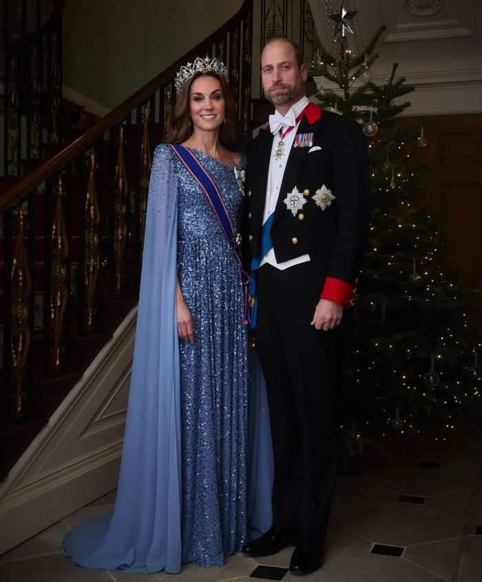 Ο Πρίγκιπας William, εξίσου επιβλητικός, τίμησε το πρωτόκολλο με στολή λευκού tie. Μαζί, οι δύο τους έμοιαζαν σαν να έχουν βγει από σελίδα περιοδικού υψηλής μόδας, χωρίς όμως να χάνουν ούτε στιγμή τη σοβαρότητα των διπλωματικών καθηκόντων τους.