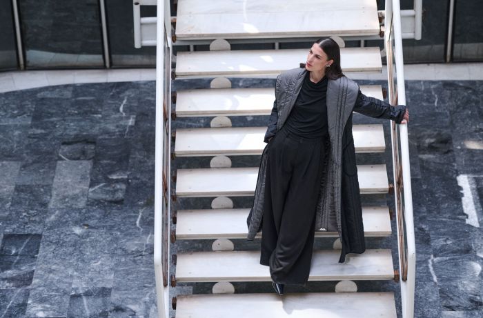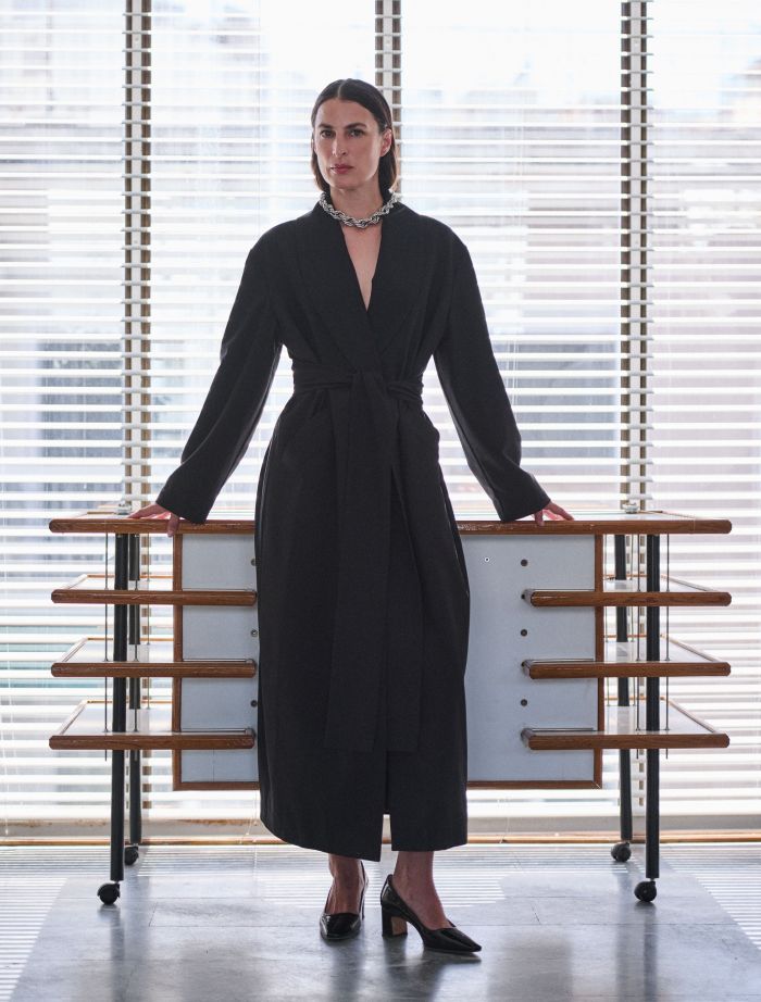 Οι υφές αποτελούν τον πυρήνα της συλλογής: βρασμένο μαλλί, απαλές στρώσεις ποπλίνας και άδομες πλέξεις προσδίδουν άνεση και βάθος, τα αναστρέψιμα πανωφόρια θολώνουν τα όρια μεταξύ λειτουργικότητας και μορφής, ενώ οι διαχρονικές δερμάτινες τσάντες αντηχούν τη γλυπτική απλότητα.