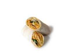 Απολαυστική τορτίγια με παναρισμένα φυτικά nuggets Garden Gourmet®, σπανάκι, λάχανο, καρότο, καραμελωμένα κρεμμύδια & vegan μαγιονέζα.