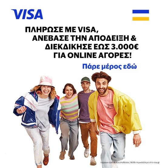 Μην χάνεις άλλο χρόνο, λοιπόν! Αποφάσισε ποιο travel trend σε εκφράζει περισσότερο και κάνε όλες τις απαραίτητες κινήσεις, ώστε να οργανώσεις τις διακοπές που θα σου χαρίσουν το καλοκαίρι που ονειρεύεσαι. Έτσι και αλλιώς, χρησιμοποιώντας τη VISA σου μπορείς να προαγοράσεις τη διαμονή, τα εισιτήρια και τις εμπειρίες που θα ζήσεις πολύ σύντομα. Μάλιστα, φέτος το καλοκαίρι, έχεις μια μοναδική ευκαιρία να κερδίσεις: Κάνοντας τις αγορές σου με Visa και ανεβάζοντας την απόδειξή σου στη σελίδα www.visa.gr/promo, μπορείς να διεκδικήσεις έως 3.000 ευρώ για τις online αγορές σου!