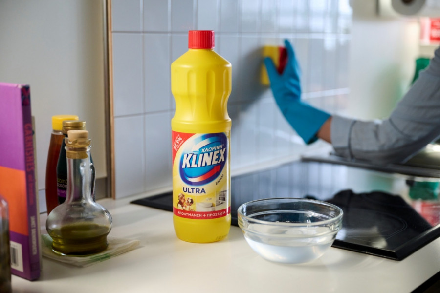 Ένα γρήγορο πέρασμα με ένα πανάκι με Χλωρίνη Klinex, την οποία πρώτα θα έχεις «διαλύσει» με νερό, αρκεί για να απολυμάνεις ακόμη και μικρές επιφάνειες στο σπίτι και να πεις «αντίο» στα μικρόβια. Διότι μην ξεχνάς, η Χλωρίνη Klinex εξουδετερώνει το 99,9% των μικροβίων και χαρίζει απολύμανση από βακτήρια, ιούς, μούχλα, ενώ παράλληλα αποτρέπει τη συσσώρευση αλάτων και προσφέρει λάμψη που διαρκεί.
