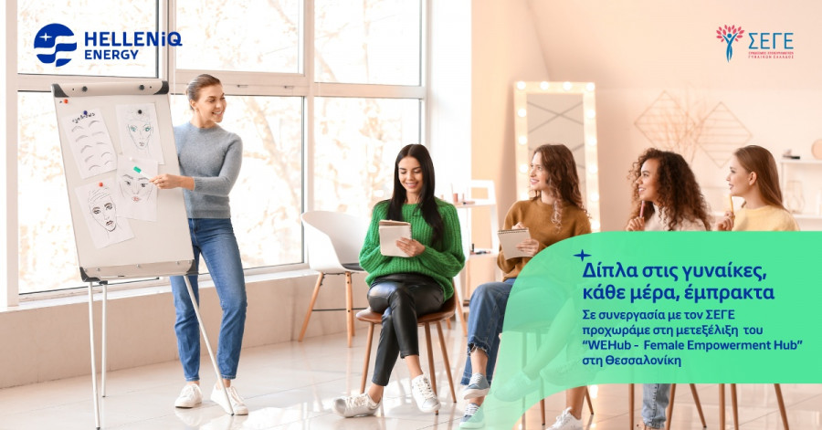 Το 2025, η HELLENiQ ENERGY προχωρά στη δημιουργία ενός ακόμη χώρου ενδυνάμωσης ευάλωτων γυναικών. Σε συνεργασία με τον Σύνδεσμο Επιχειρηματιών Γυναικών Ελλάδος (ΣΕΓΕ), το "WEHub - Female Empowerment Hub" στη Θεσσαλονίκη μετατρέπεται σε έναν υποστηρικτικό χώρο που διευκολύνει την πρόσβαση γυναικών, ιδιαίτερα από ευάλωτες κοινωνικές ομάδες, σε εκπαιδευτικά προγράμματα και mentoring, δίνοντάς τους τη δυνατότητα να αναπτυχθούν επαγγελματικά και να αποκτήσουν αυτονομία.