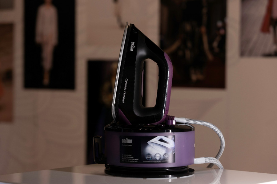 Τη στιγμή που η μόδα απαιτεί ρούχα με βολάν, πιέτες, σούρες, και γενικότερα δύσκολα σημεία σιδερώματος, η Braun ενεργοποίησε το διπλό σύστημα ατμού και ήταν αυτό που έκανε τα ρούχα να δείχνουν ατσαλάκωτα στο μισό χρόνο από ό,τι θα τα κάναμε υπό άλλες συνθήκες ακόμα και στα πιο δυσπρόσιτα σημεία. Ωστόσο, κάτι άλλο που παρατηρήσαμε ήταν πως η πλάκα του σίδερου ήταν ανασηκωμένη προς τα πίσω για να σιδερώνει προς κάθε κατεύθυνση, χωρίς να χρειάζεται να σηκώσουμε το σίδερο κάθε φορά που συναντούσε κουμπιά, τσέπες και φερμουάρ. Αυτό που μας απογείωσε όμως εντελώς ήταν η ξεκούραστη θέση που καρπού επάνω στην ανοιχτή λαβή και η άνεση που αισθάνεται κανείς όταν κρατάει το νέο σχεδιαστικά σίδερο της Braun. Με την ίδια άνεση ‘’ξεχάσαμε’’ το ζεστό σίδερο επάνω σε λεπτά και διάφανα υφάσματα όπως αυτά που είδαμε από την Chloe στο Mιλάνο αφού οι ειδικοί της Braun μας διαβεβαίωσαν ότι δεν πρόκειται να τα κάψει λόγω της λειτουργίας iCare. Kαι όντως έτσι έγινε πράγμα που μας εντυπωσίασε.
