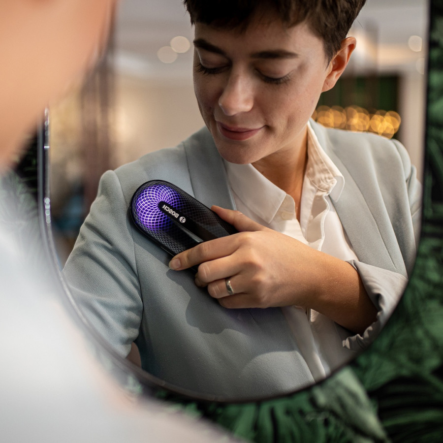 Να έχεις πάντα και παντού μαζί σου το φορητό, εύχρηστο gadget φρεσκαρίσματος ρούχων, FreshUp, μία μικρή, ελαφριά συσκευή που χάρη στην τεχνολογία Bosch Plasma απομακρύνει με ασφάλεια τις δυσάρεστες οσμές του σώματος, του φαγητού, του τσιγάρου και των κατοικίδιων από τα υφάσματα, χωρίς τη χρήση χημικών, απορρυπαντικού ή νερού. Πιο αναλυτικά, τα σωματίδια πλάσματος εισχωρούν στις ίνες του υφάσματος, διασπώντας με φυσικό τρόπο τα μικροσωματίδια που προκαλούν τις δυσάρεστες οσμές και εξουδετερώνοντας αποτελεσματικά τους ιούς και τα βακτήρια έως και 99,9%*, οπότε τα ρούχα σου ανανεώνονται ουσιαστικά και σε βάθος, αμέσως, με μία μόνο κίνηση.