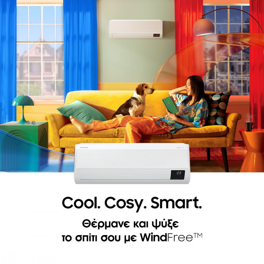 Σου επιτρέπει να φέρεις την αίσθηση άνεσης και ζεστασίας μέσα στο σπίτι ώστε να απολαύσεις κάθε χειμωνιάτικη ημέρα που έρχεται. Φυσικά, όταν ο καιρός ζεστάνει και θέλεις το αντίστροφο, δηλαδή το σπίτι σου να είναι η προσωπική σου όαση δροσιάς, πάλι το WindFree™ Elite της Samsung θα «καθαρίσει» για εσένα!