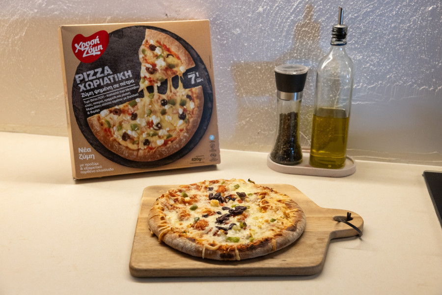 Αν φέτος το καλοκαίρι σε βρει σε βεράντα χωριού, αυλή εξοχικού ή σε παραλίες, η Pizza Χωριάτικη της Χρυσής Ζύμης θα φέρει την παράδοση στο πιάτο σου. Με πικάντικη φέτα Π.Ο.Π., καπνιστό τυρί Μετσόβου, ελιά, μυρωδάτη σάλτσα με βασιλικό και άλλα υλικά της ελληνικής παραδοσιακής διατροφής, θυμίζει καλοκαίρι στην Ελλάδα. Την ψήνεις εύκολα, χωρίς ταψί, και την απολαμβάνεις ζεστή-ζεστή με την οικογένεια ή την παρέα. Χωρίς συντηρητικά και με ατόφια ελληνική γεύση, είναι η ιδανική επιλογή για να δώσεις παραδοσιακό άρωμα στις πιο ξέγνοιαστες στιγμές του καλοκαιριού.