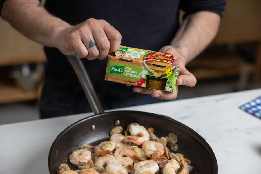 - Ρίξε τον Knorr «Σπιτικό» Ζωμό Λαχανικών απευθείας στο τηγάνι για να δώσει «βάθος» στη σάλτσα.