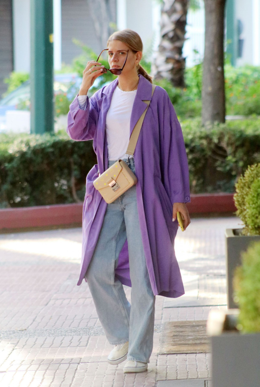 Ο φωτογραφικός φακός συνέλαβε τη Δανάη Μιχαλάκη σε μία χαλαρή βόλτα της στο κέντρο της Αθήνας, με ένα casual chic σύνολο, που σίγουρα θα σου δώσει το απαραίτητο inspo, που ψάχνεις. Πιο συγκεκριμένα, η Δανάη διάλεξε ένα wide leg τζιν παντελόνι σε ανοιχτή denim απόχρωση, με ψηλή μέση, και ένα απλό λευκό tee. Από πάνω φόρεσε μία ενδιαφέρουσα μωβ καμπαρντίνα σε oversized γραμμή, και ολοκλήρωσε με λευκά sneakers και ivory, cross body τσάντα. Δες το look της παρακάτω, που αποδεικνύει ότι ένα πανωφόρι μπορεί να κάνει τη διαφορά.