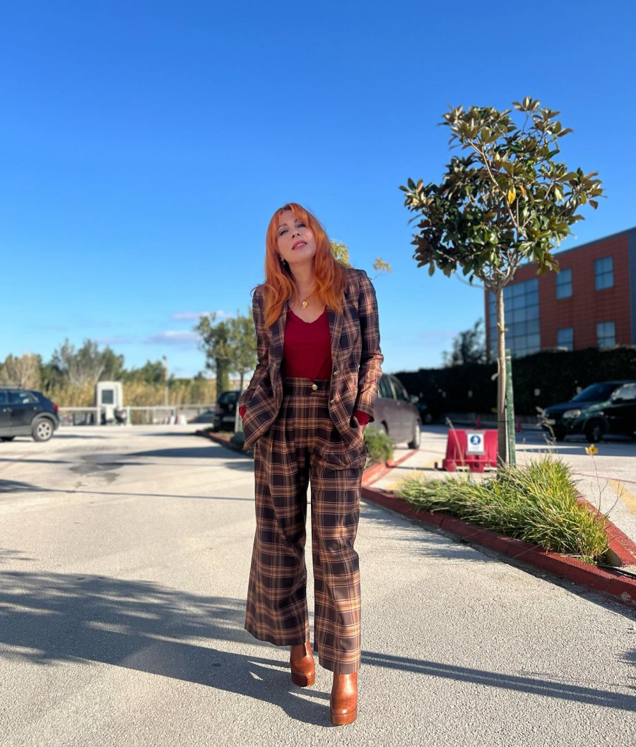 Το καρό κοστούμι της Σμαράγδας Καρύδη είναι η κομψή προσθήκη που λείπει από τη ντουλάπα σου