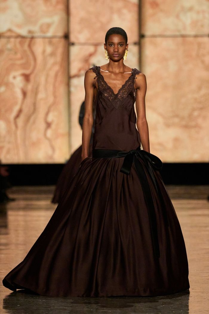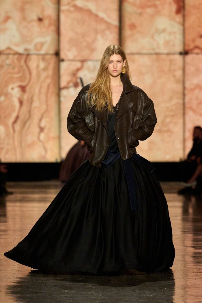 H Rihanna μια έγκυος θεά σε σοκολατί τόνο ξεχώρισε με την χθεσινή της εμφάνιση. Η εγκυμονούσα στο 3ο της παιδί, έκλεψε για άλλη μια φορά τις εντυπώσεις με ένα εντυπωσιακό look από τη συλλογή Saint Laurent Fall/winter 2025, Ready-to-Wear, που αποτελείται από σατέν μάξι φούστα σε γλυκιά απόχρωση κακάο και χακί κορδέλα σαν ζώνη (χαρακτηριστική του συνόλου όπως είδαμε στην πασαρέλα του οίκου), με δαντελένιο top και oversized δερμάτινο jacket, δημιουργώντας έναν αβίαστο συνδυασμό θηλυκότητας και δυναμισμού.