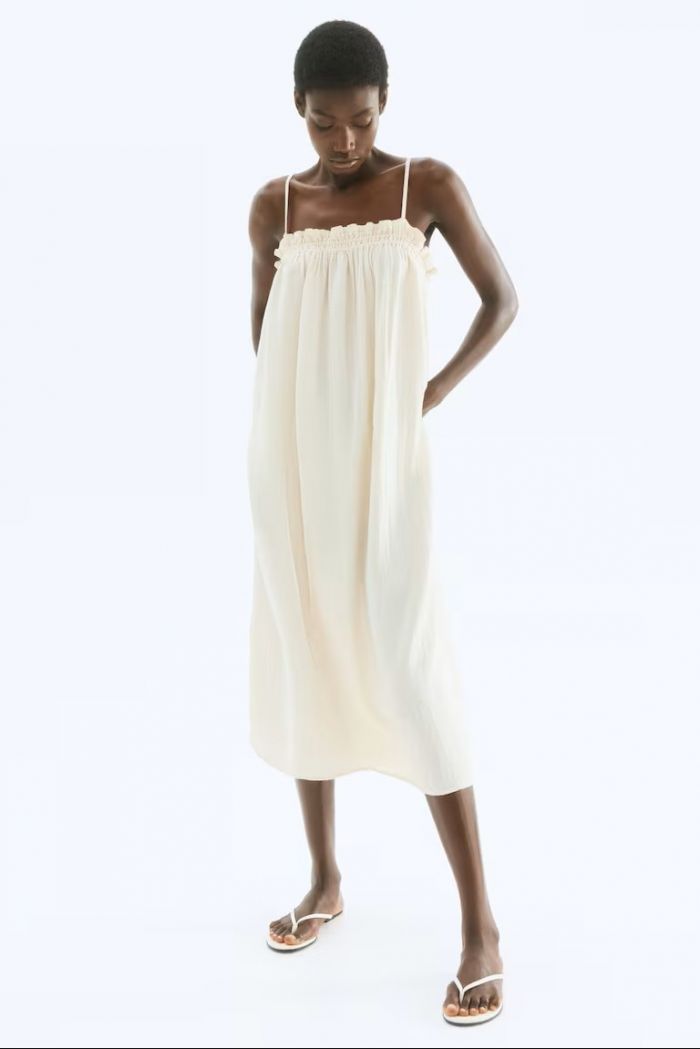 Ένα απλό, μπεζ μάξι φόρεμα μπορεί να δείχνει «ήσυχο», αλλά στα χέρια (και το στυλ) της Σοφίας μετατρέπεται σε fashion statement μαζί με nude sandals και λευκή τσάντα. Το συγκεκριμένο look αποπνέει μια ανεπιτήδευτη κομψότητα, ιδανικό για απογευματινές βόλτες ή και καλοκαιρινά events.