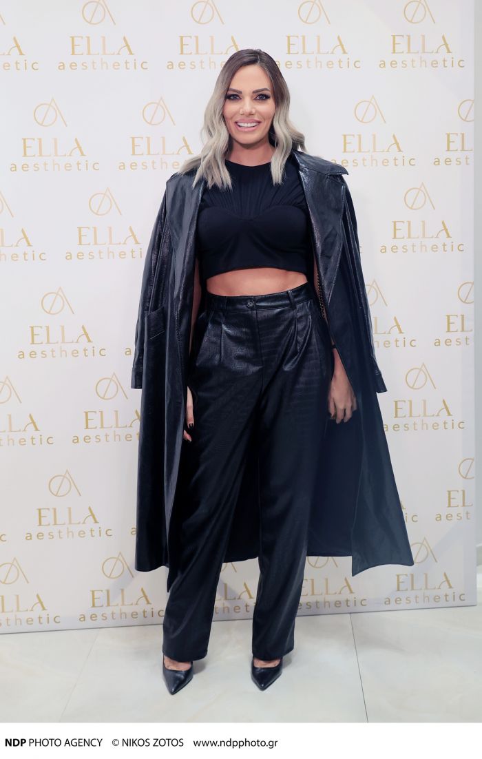 Από την άλλη, η Ιωάννα Μαλέσκου επέλεξε μια πιο τολμηρή και glamorous εκδοχή. Συνδύασε το δερμάτινο παντελόνι της με crop top και structured δερμάτινη καπαρτίνα, δημιουργώντας ένα total black look γεμάτο αυτοπεποίθηση.