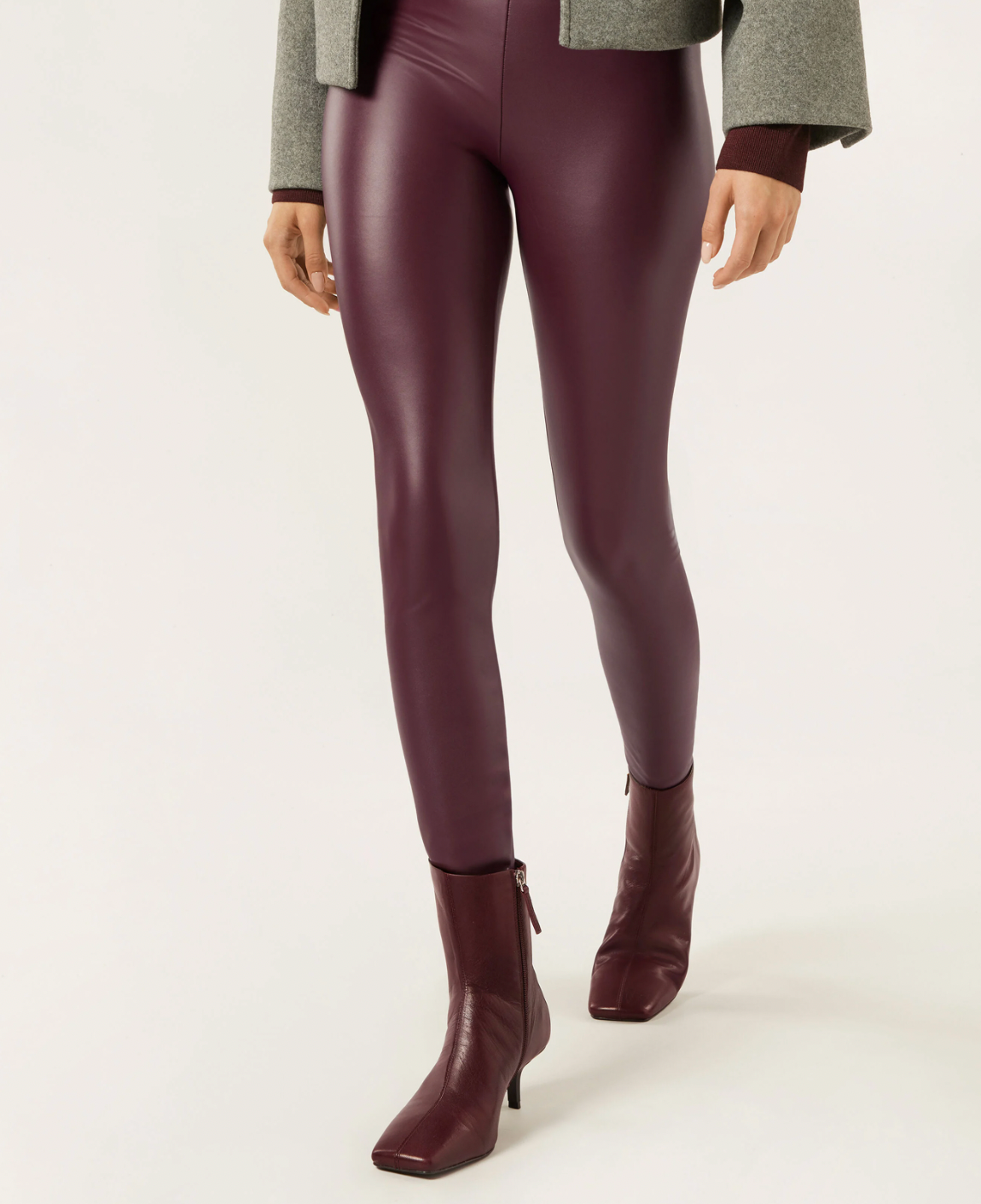 Η Σταματίνα Τσιμτσιλή επέλεξε μια πιο minimal, αλλά εξαιρετικά κομψή προσέγγιση. Το εφαρμοστό μαύρο leather pant αγκάλιαζε τη σιλουέτα της, ενώ το συνδύασε με ένα ανθρακί μεταξωτό ματ πουκάμισο που πρόσθετε διακριτική πολυτέλεια στο σύνολο.