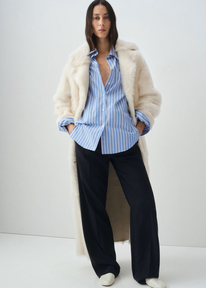 Το total look της Ελένης, είναι η καλύτερη έμπνευση για το φθινόπωρο και τον χειμώνα με το κατάλληλο layering. Η παρουσιάστρια επέλεξε ένα ριγέ πουκάμισο σε λευκή βάση με λεπτές μπλε ρίγες, ένα κομμάτι που θα μπορούσε εύκολα να βρίσκεται στη γκαρνταρόμπα κάθε γυναίκας που θέλει να επενδύσει στην κομψότητα χωρίς υπερβολές. Το συνδύασε με denim flare jeans, που χαρίζουν μακρόστενη σιλουέτα, μαύρα κλασικά φλατ μποτίνια για να είναι άνετη και ένα ελαφρύ puffer μπουφάν σε σκούρο μπλε στο χέρι, ιδανικό για τις εναλλαγές θερμοκρασίας της εποχής.