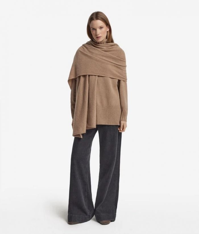 Και φυσικά, το κομμάτι-κλειδί της εμφάνισης ήταν η μπεζ μάλλινη πασμίνα, ριγμένη χαλαρά στους ώμους. Η πασμίνα προσθέτει ζεστασιά, αλλά και μια αίσθηση διακριτικής πολυτέλειας, μαλακώνοντας το πιο αυστηρό κομμάτι του look και δένοντας αρμονικά με τα υπόλοιπα χρώματα.