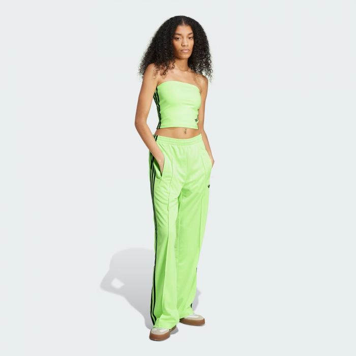 Η ηθοποιός εμφανίστηκε με ένα neon λαχανί σετ φόρμας Adidas, ασορτί πάνω–κάτω με τις χαρακτηριστικές ρίγες, τραβώντας αμέσως τα βλέμματα.