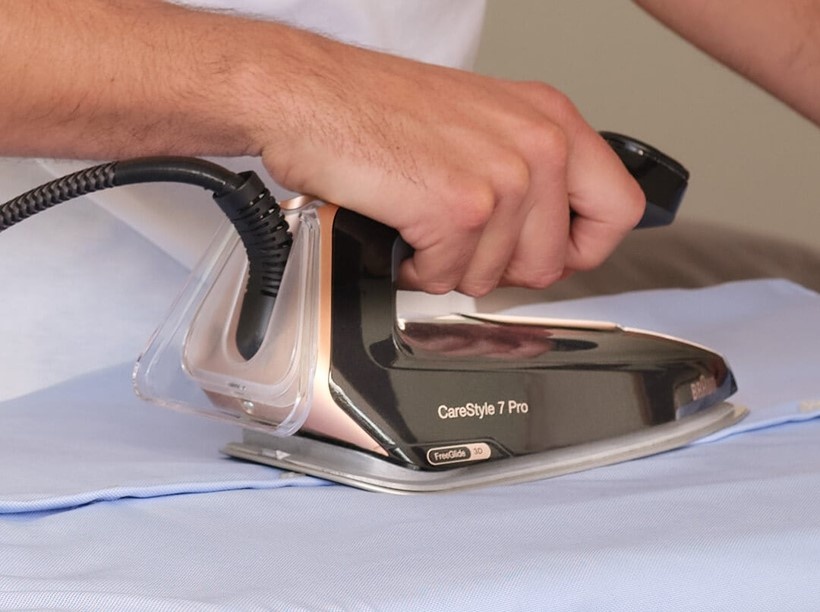 #2 Ανεμπόδιστο στυλ; Με το CareStyle θα το έχεις, ακόμη και αν χρειάζεσαι ASAP ένα καλοσιδερωμένο σύνολο για ένα ραντεβού της τελευταίας στιγμής. Τα credits στη συγκεκριμένη περίπτωση πηγαίνουν στην πλάκα FreeGlide 3D, την οποία διαθέτουν όλα τα συστήματα σιδερώματος ατμού της Braun. Πώς κάνει τη διαφορά; Σιδερώνει προς όλες τις κατευθύνσεις -ναι, ακόμη και προς τα πίσω- και χωρίς να σηκώσεις το σίδερο, περνάει πάνω από κάθε εμπόδιο: Από κουμπιά μέχρι τσέπες και από φερμουάρ μέχρι βολάν, πιέτες, σούρες. You name it! Θα σιδερώσεις εύκολα και γρήγορα ακόμη και τα σκληρά υφάσματα ή τις πιο επίμονες ζάρες και μάλιστα, στον μισό χρόνο -σε σύγκριση και πάλι με τα απλά σίδερα ατμού.