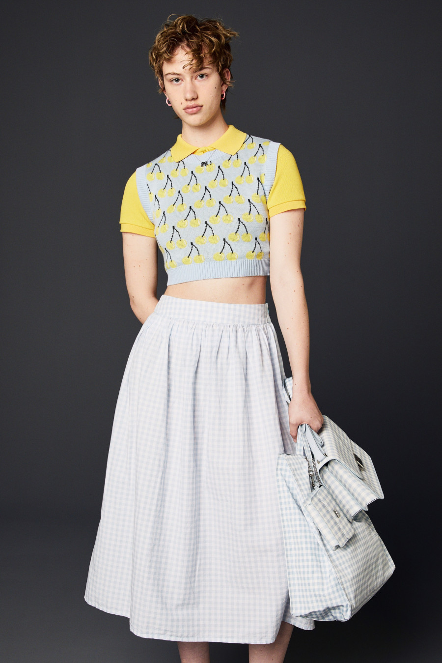 Εκτός από τις κλασικές οριζόντιες ρίγες, το βασικό στοιχείο της νέας συλλογής είναι τα φρούτα. Μήλα, αχλάδια και κεράσια φυτρώνουν σαν γιγάντιες εικόνες πάνω σε μπλούζες, ζακέτες, τσάντες και καπέλα, σχηματίζοντας ατελείωτα μοτίβα.