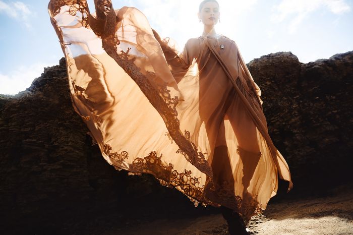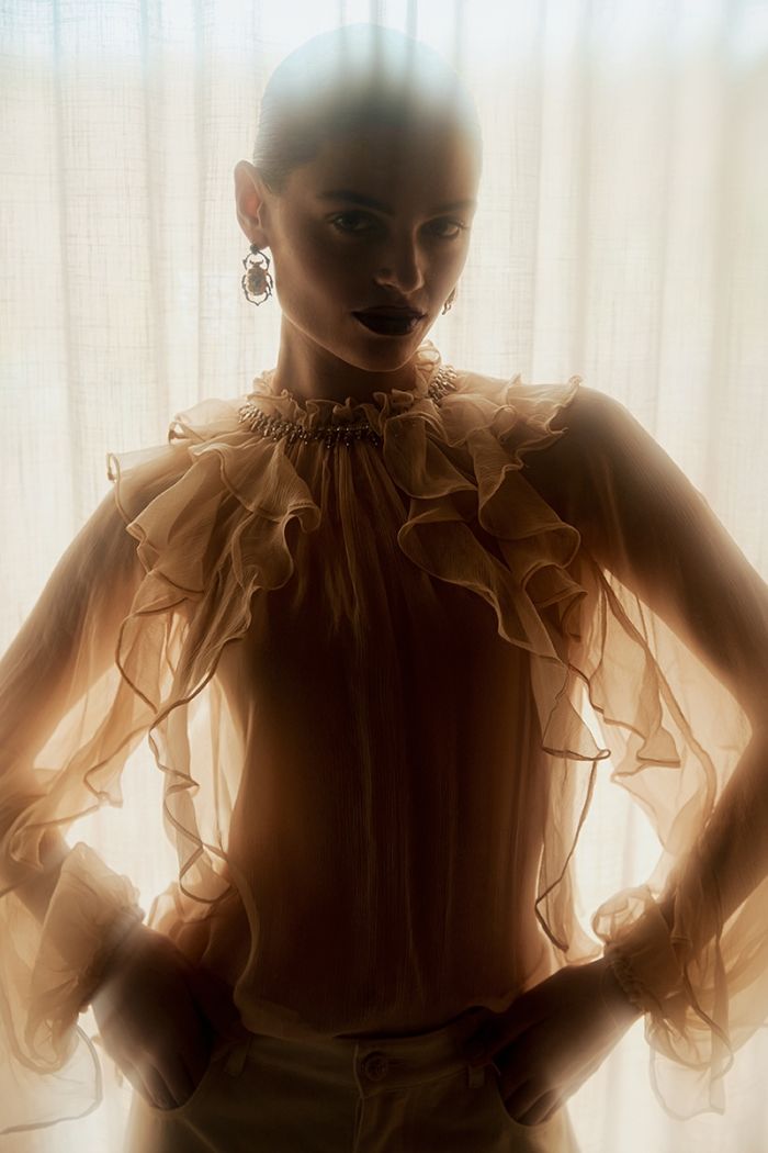 Τα ρούχα της νέας συλλογής διαπνέονται από μία αίσθηση ρομαντισμού, με εκλεπτυσμένες γραμμές, αέρινα υφάσματα και θεατρικά κοψίματα που θυμίζουν την ατμόσφαιρα του παρελθόντος