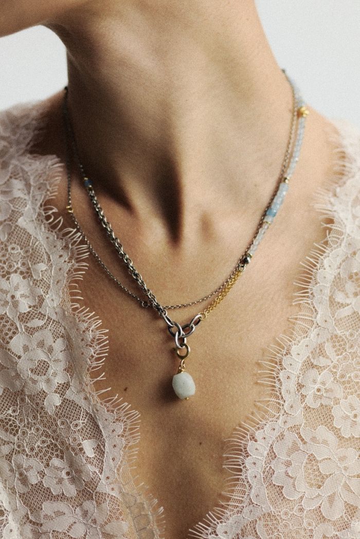 Τα χειροποίητα κοσμήματα με φυσικές πέτρες ολοκληρώνουν τις στιλιστικές επιλογές, παραμένοντας ευέλικτα και ταιριαστά με κάθε εμφάνιση.