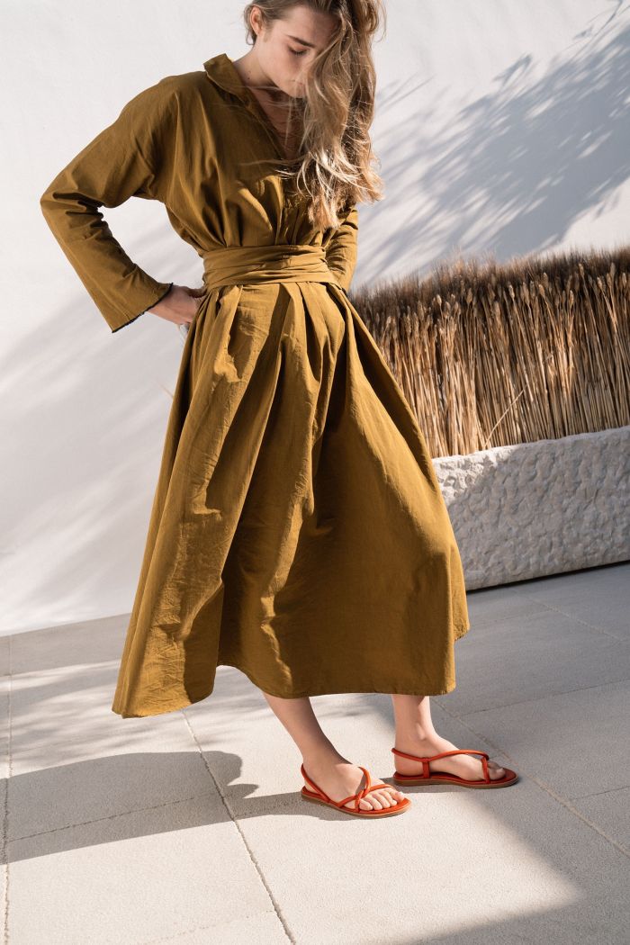 Το σχέδιο Matina είναι μία άνετη slide εκδοχή του κλασικού fisherman σανδαλιού, με μαλακή σόλα (thin soft sole) και αφρώδη δερμάτινο πάτο. Κλειστό μπροστά για να φορεθεί την άνοιξη, όταν ο καιρός είναι δροσερός, ή με λινά φορέματα στις διακοπές.