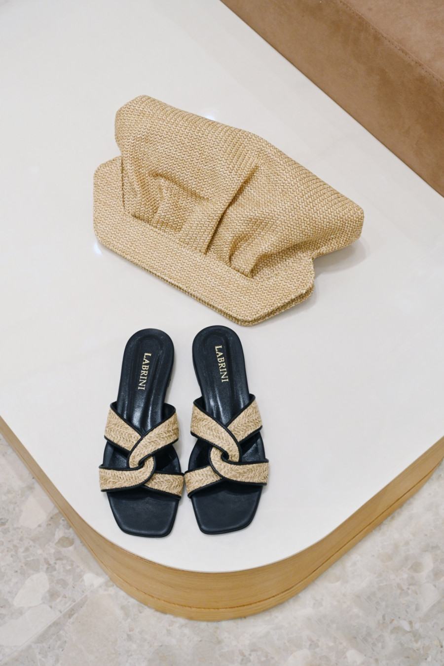 Για αυτό, αν ψάχνεις κάτι απλό αλλά elegant, ένα ζευγάρι δερμάτινα σανδάλια από το κατάστημα LABRINI, σε black Raffia απόχρωση, με ψάθινες λεπτομέρειες, είναι η πιο stylish επιλογή. Αλλά και η πιο άνετη, για dancing sessions μέχρι τις πρώτες ακτίνες του ήλιου.