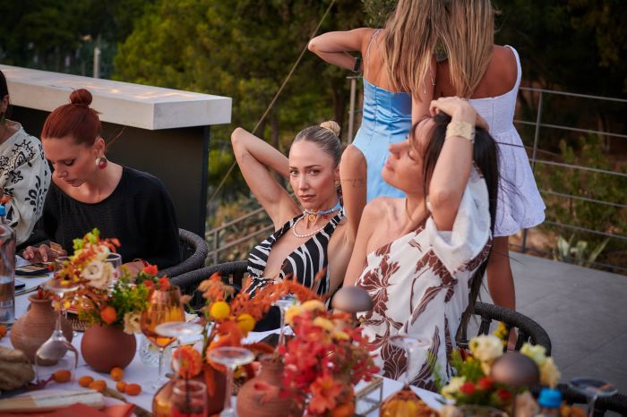 Ανάμεσα τους, οι εκθαμβωτικές Έβελυν Καζαντζόγλου, Κατερίνα Ευαγγελινού, Χρυσιάννα Ανδριοπούλου, Νικολέττα Ράλλη, Ιωάννα Σρόιτερ και Δώρα Κατσικογιάννη, έδωσαν ιδιαίτερη λάμψη με την παρουσία τους. Η βραδιά κύλησε με δροσιστικά κοκτέιλ, μοντέρνες μεσογειακές γεύσεις και ζωντανή μουσική με βιολιά που σε ταξίδευαν στους καλοκαιρινούς σου προορισμούς, αφήνοντας μια γλυκιά υπόσχεση ανεμελιάς.
