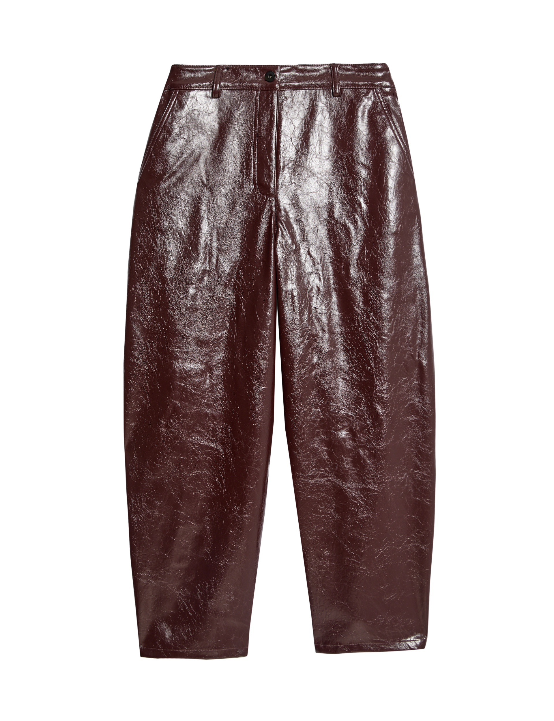 Το βαθύ μπορντό κυριαρχεί, δίνοντας ένταση και χαρακτήρα σε δερμάτινα jackets,ι παντελόνια, αλλά και αξεσουάρ. Με glossy υφές που παίζουν με το φως, η συλλογή αποκτά μια ανατρεπτική, πολυτελή διάσταση, αλλά και τολμηρή.