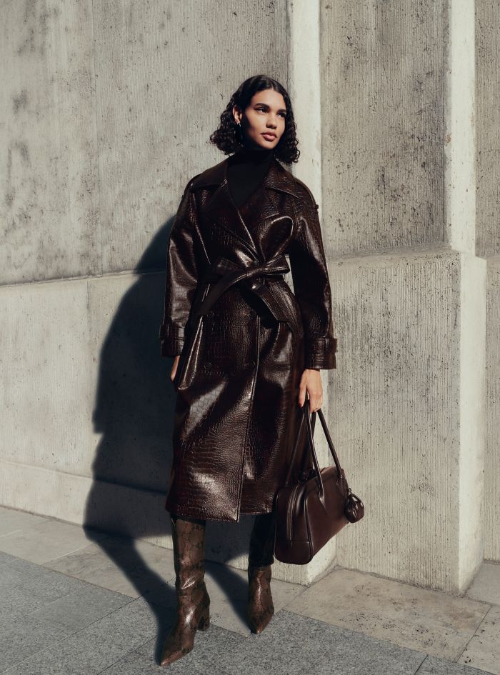 Στη σειρά The Edit, ξεχωρίζει μια επιμελημένη συλλογή από hero pieces που ισορροπούν δομή και κομψότητα: συνδυαστικά σετ, δερμάτινες φούστες σε γραμμή Α, trench coats και γιλέκα με θηλυκές σιλουέτες και φινιρίσματα υψηλής αισθητικής. Key items αποτελούν τα PU barrel-leg παντελόνια και το Croc Trench Coat. Jacquards και tweeds δίνουν βάθος στα πανωφόρια και το tailoring, ενώ οι γυαλιστερές υφές, το embossed leather, τα animal prints και το βελούδο προσθέτουν πολυτέλεια στο καθημερινό ντύσιμο.