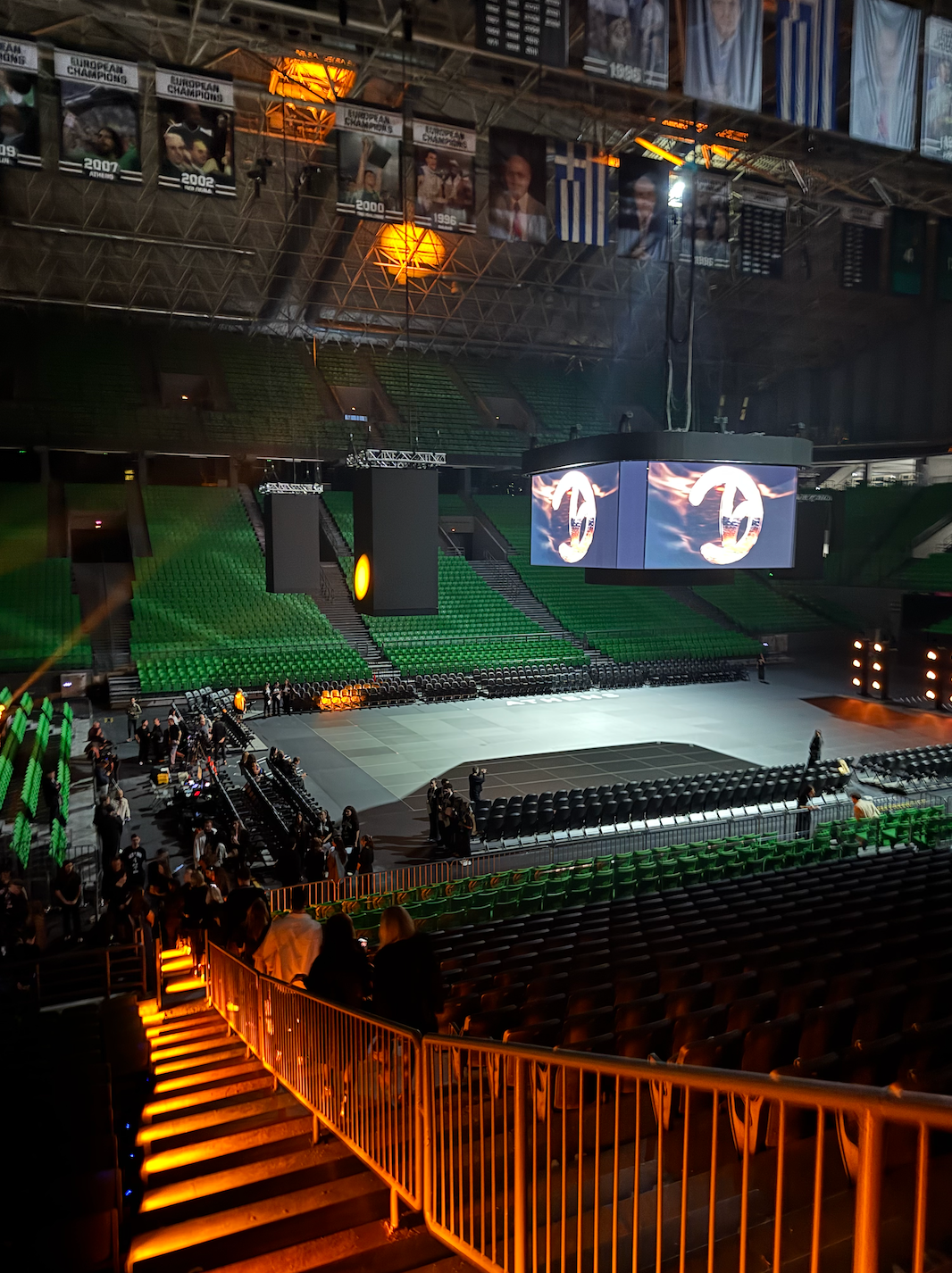 Από την πρώτη στιγμή που φτάσαμε στον χώρο και αντικρίσαμε το άδειο γήπεδο ανυπομονούσαμε να βρούμε τις θέσεις μας για ξεκινήσει το show και να ανάψουν τα φώτα του glass floor. Φαινόταν ότι κάτι μεγάλο θα συμβεί.