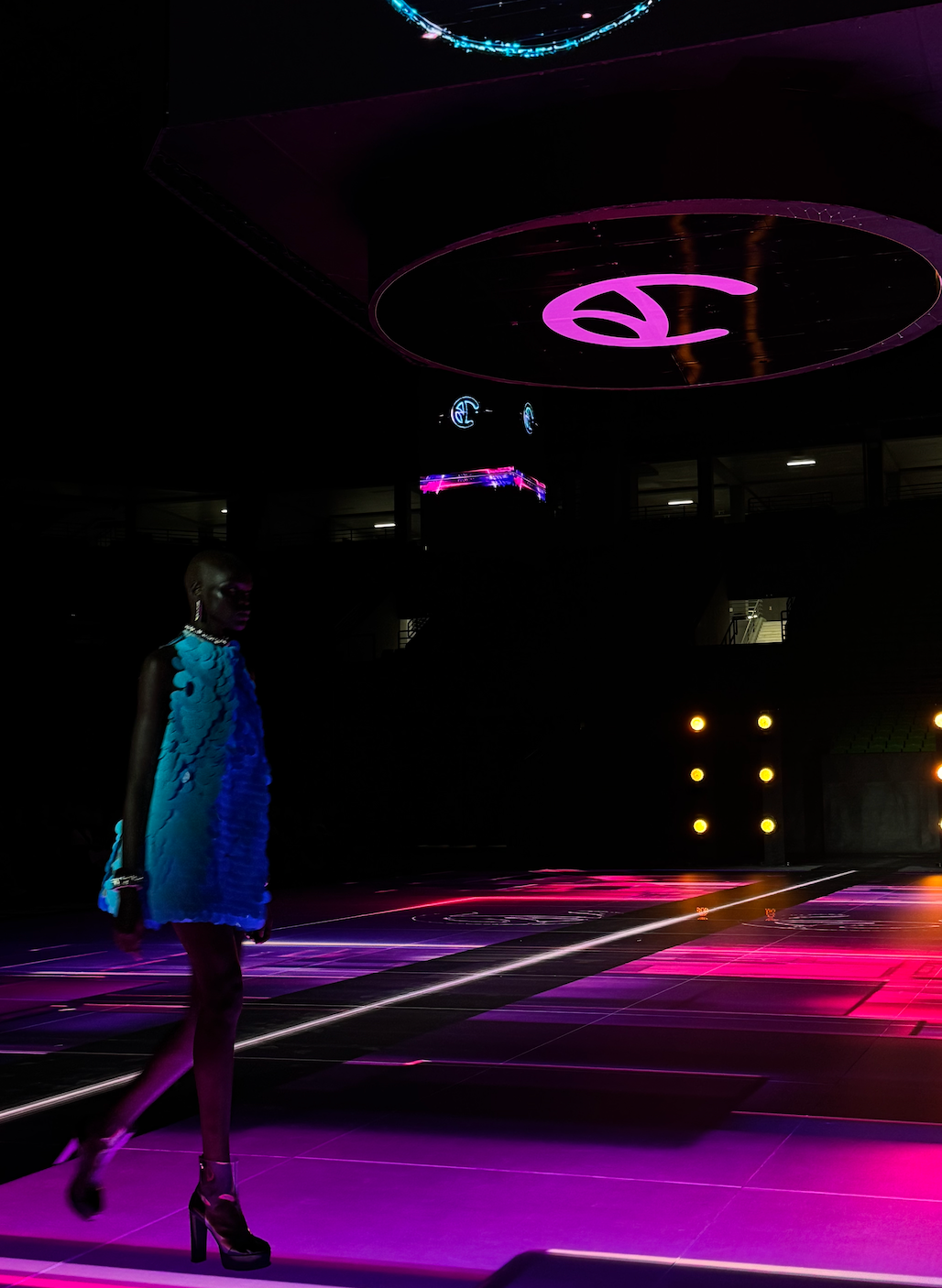 Για πρώτη φορά στην Ελλάδα, ένα glass floor, ένα γυάλινο δάπεδο που φώτιζε και αντανακλούσε κάθε κίνηση, φιλοξένησε επίδειξη μόδας, προσφέροντας ένα θεαματικό παιχνίδι φωτός και αντανακλάσεων.