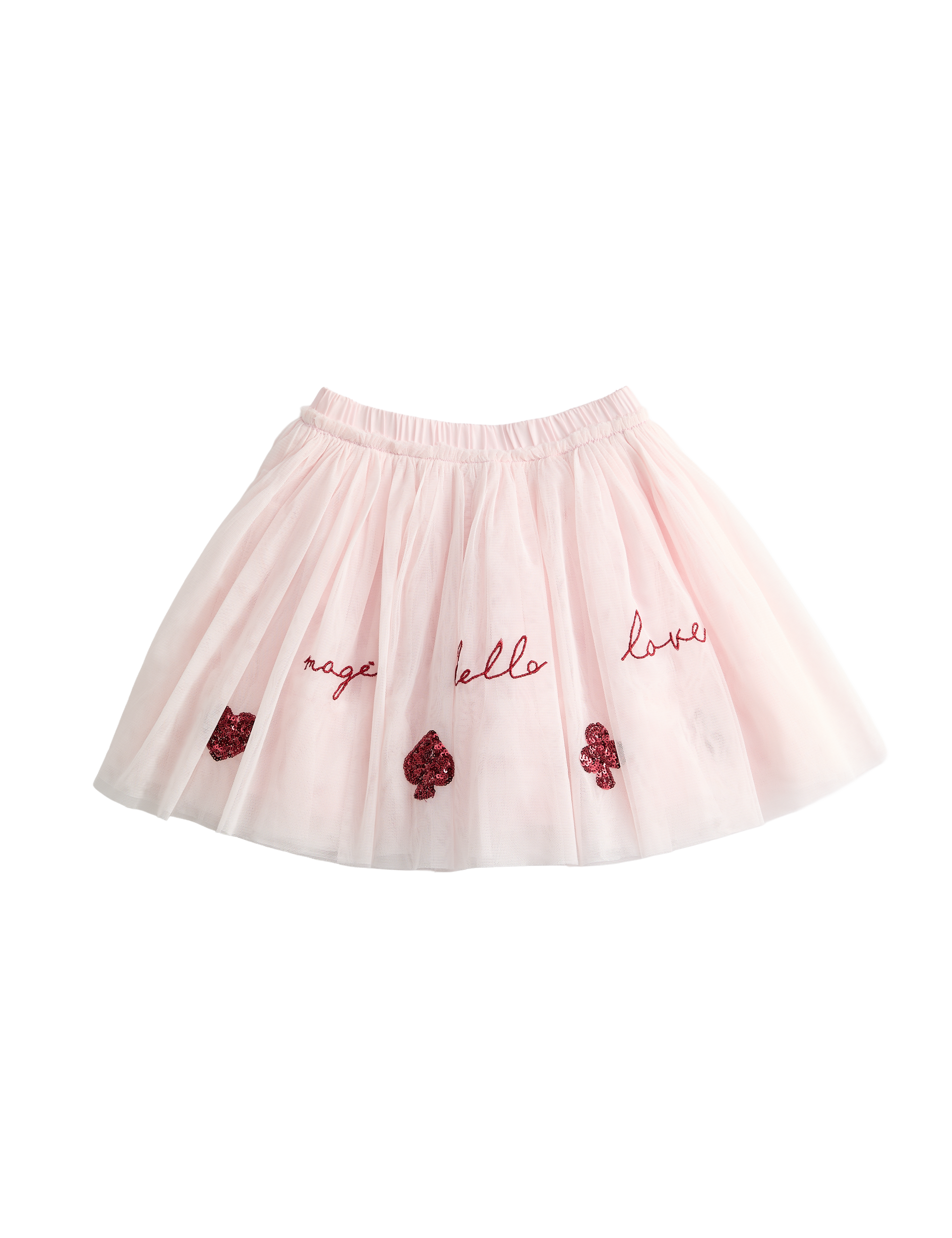 Από την παιδική συλλογή, η ροζ τούλινη φούστα (T77/1409E) με λεπτομερείς κεντημένες λέξεις και μοτίβα προσθέτει μια αίσθηση χαριτωμένης κομψότητας στα παιδικά σύνολα. Με την απαλότητα του χρώματος και την ανάλαφρη υφή του τούλι, αποτελεί μια σύγχρονη και ξεχωριστή πρόταση για casual αλλά και semi-formal γιορτινές εμφανίσεις, αναδεικνύοντας το στιλ των μικρών μας με ιδιαίτερη φρεσκάδα.