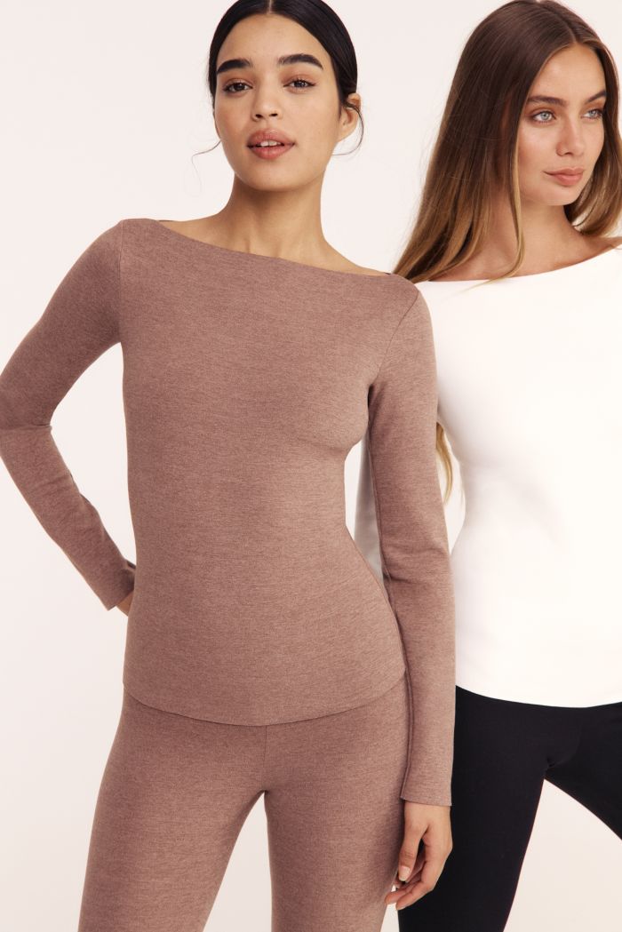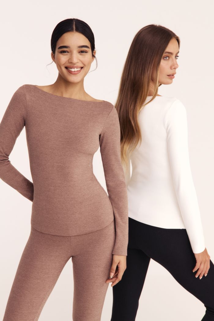 Η πολυχρηστική ποικιλία της συλλογής περιλαμβάνει μακρυμάνικο thermal κορμάκι με στρογγυλή λαιμόκοψη, ένα tank top με φαρδιές τιράντες και στρογγυλεμένο τετράγωνο ντεκολτέ, και τα δύο είναι ιδανικά ως βάση για layering, ένα μακρυμάνικο top με λαιμόκοψη χαμόγελο, κατάλληλο για κομψό layering ή για να φορεθεί μόνο του χάρη στις καθαρές essentials γραμμές του. Η συλλογή περιλαμβάνει επίσης ένα μακρυμάνικο ζιβάγκο top για όσες επιθυμούν να προστατεύσουν τον λαιμό και το ντεκολτέ από το κρύο. Τέλος, τα ψηλόμεσα κολάν προσφέρουν επιπλέον ζεστασιά και άψογη εφαρμογή.