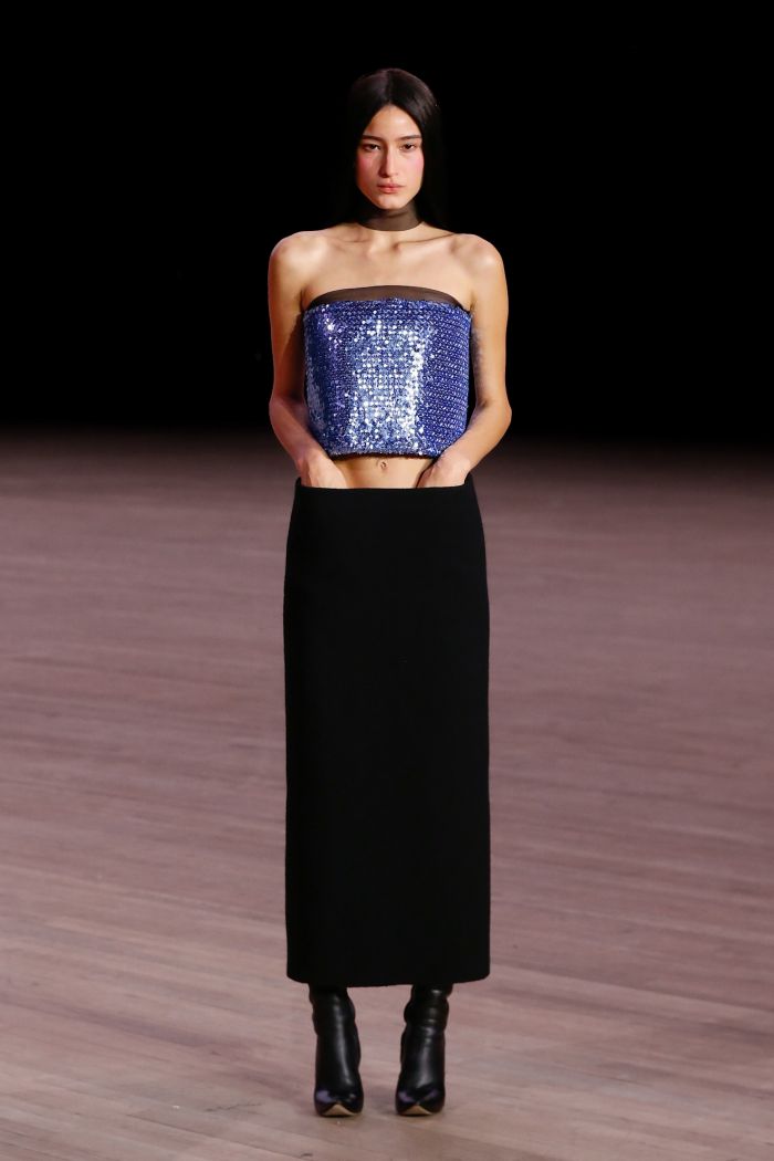 Αντί για εντυπωσιακά, «φωνητικά» κομμάτια, η συλλογή επικεντρώθηκε σε καθαρές γραμμές και διαχρονικές σιλουέτες. Φούστες, πουλόβερ και διακριτικά σακάκια συνδυάστηκαν με printed φορέματα και απλά αξεσουάρ, δημιουργώντας μια αίσθηση ρευστότητας και κομψότητας. Η αισθητική αυτή μας θυμίζει τις τάσεις της δεκαετίας του ’90, με έναν σύγχρονο και preppy - φρέσκο τρόπο.