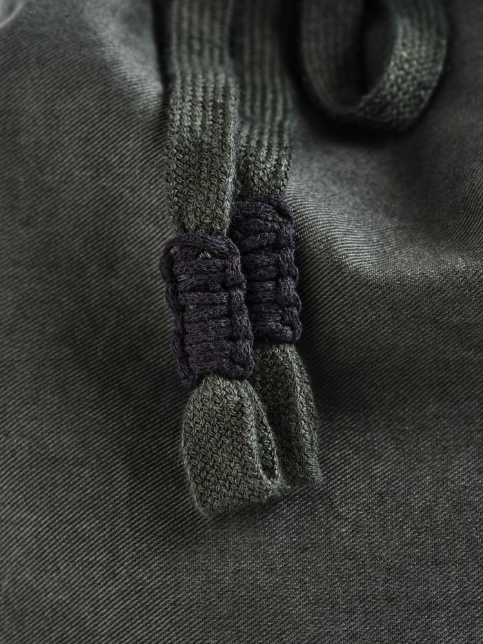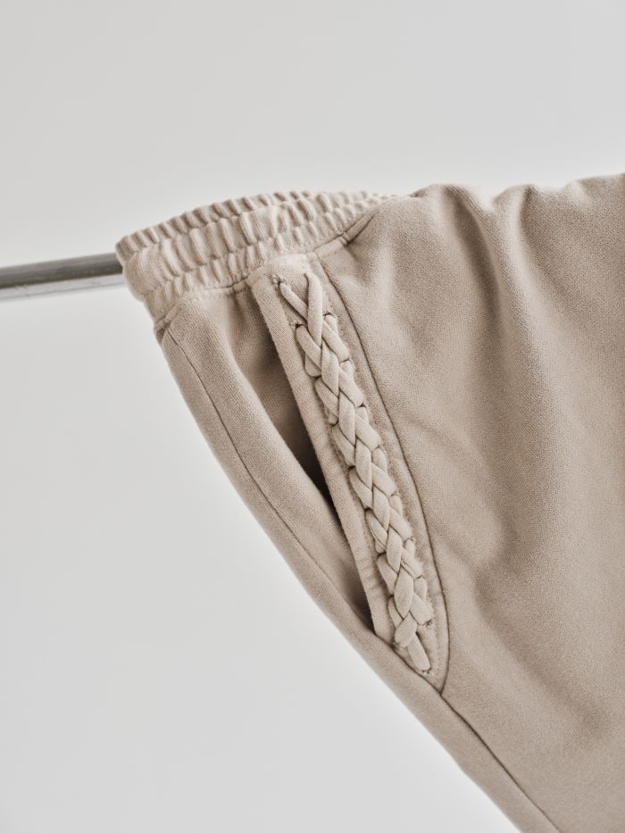 Το χειροποίητο μακραμέ, χαρακτηριστικό στοιχείο της Callista, πρωταγωνιστεί και σε αυτή τη συνεργασία με εφαρμογή σε νέα υλικά. Παράλληλα, τα ιδιαίτερα υφάσματα και οι garment-dyed επεξεργασίες, στοιχεία-υπογραφή της Dirty Laundry, προσθέτουν υφή και χαρακτήρα στη συλλογή.