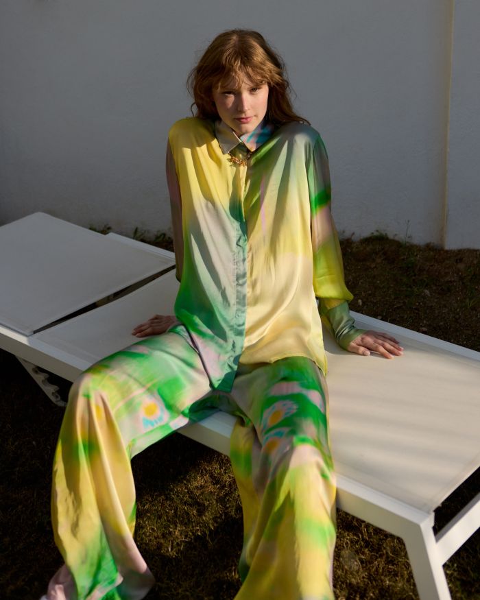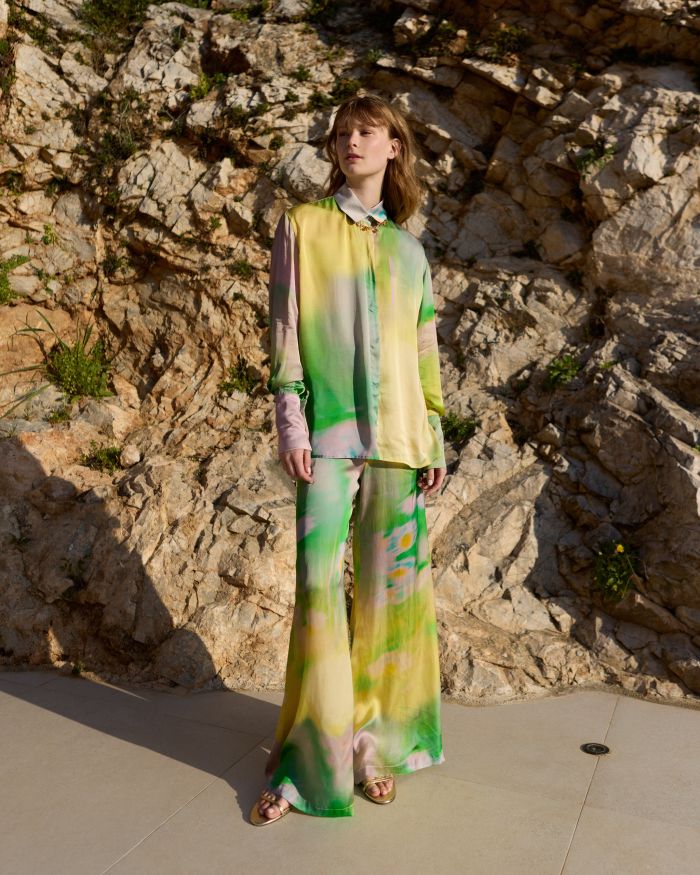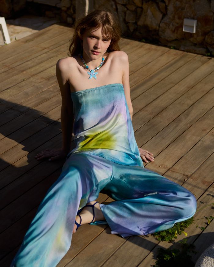 Η παλέτα της συλλογής φέτος είναι ρομαντική, γλυκιά, χωρίς να χάνει την έντασή της και είναι ολόκληρη made in Greece με υφάσματα ECOVERO™, δίνοντας έτσι προτεραιότητα σε «ηθικές» επιλογές υλικών με μειωμένο περιβαλλοντικό αποτύπωμα. Κάθε κομμάτι παράγεται τοπικά, σε συνεργασία με μικρής κλίμακας δημιουργούς και τεχνίτες που μοιράζονται τη δέσμευσή του brand για ποιότητα και υπεύθυνη παραγωγή.