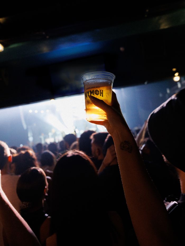 Αφού πήραμε μέρος στον διαγωνισμό και χαζέψαμε λεπτομερώς το jersey, στα χρώματα της Νύμφης, μαύρο με μανίκια και γιακά σε μπεζ χρώμα με ρίγες, προχωρήσαμε για να βρούμε το spot μας. Αρχικά κατευθυνθήκαμε προς το κοντινότερο μπαρ όπου η φωτεινή ενδείξη της ΝΥΜΦΗΣ μας έκανε να ανυπομονούμε να φτάσουμε και αφού πήραμε τις μπύρες, βρήκαμε τις θέσεις μας ανάμεσα στο πλήθος και ετοιμαστήκαμε για το live.