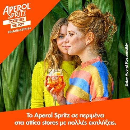Όπως και να έχει, τα καλά νέα δεν τελειώνουν εδώ! Διότι κάνοντας μερικά «κλικ» στην οθόνη του κινητού σου, ενώ θα κάθεσαι αναπαυτικά στο σαλόνι σου, θα μπορέσεις να γίνεις και εσύ μέρος της βιτρίνας του Aperol Spritz στα Attica Stores στο City Link της Πανεπιστημίου, δηλαδή του πιο fashion πολυκαταστήματος της πρωτεύουσας. Το μόνο που θα χρειαστεί να κάνεις, είναι να τραβήξεις τρεις selfies από το κινητό σου, να δημιουργήσεις γρήγορα και εύκολα το δικό σου μοναδικό Gif και έτσι, να κερδίσεις μία θέση ανάμεσα στους πιο joyful ανθρώπους της πόλης, μία θέση που πραγματικά αξίζει σε μία fashionista, όπως εσύ! Μήπως να ενημερώσεις και τους φίλους σου, ώστε να λάβουν και εκείνοι μέρος, δημιουργώντας το δικό τους ξεχωριστό Gif;