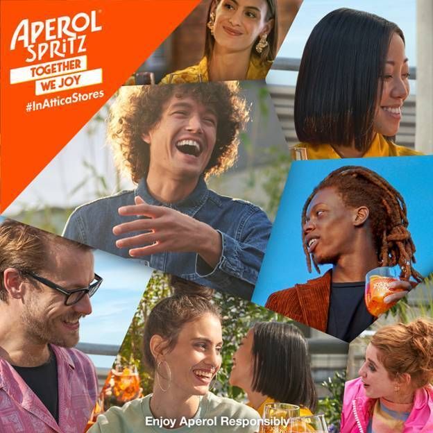 Με λίγα λόγια, αν θέλεις να απογειώσεις την εμπειρία του shopping και να δώσεις ένα together we joy twist στα απογεύματά σου, αυτό που χρειάζεσαι είναι το έντονο, πορτοκαλί χρώμα τουAperol Spritz, το οποίο με τη μοναδική γεύση και τη joyful ενέργειά του, κάνει την κάθε στιγμή μία μαγική, togetherness εμπειρία. Σε κάθε περίπτωση, πραγματοποιώντας μία επίσκεψη με την παρέα σου στο Attica στο Golden Hall μέχρι τις 14 Νοεμβρίου, θα βιώσετε παρέα μία πρωτόγνωρη shopping εμπειρία, απολαμβάνοντας δροσιστικές γουλιές από το αγαπημένο σας aperitivo, το οποίο με τις γευστικές του «νότες», θα σας χαρίσει την πιο together we joy εμπειρία. Πώς; Με κάθε αγορά 100 ευρώ και άνω, θα έχεις την ευκαιρία να κερδίσεις μία λαχταριστή Aperitivo Time εμπειρία από το Aperol Spritz στα αγαπημένα σου στέκια, την οποία μπορείς να μοιραστείς με τους φίλους σου.