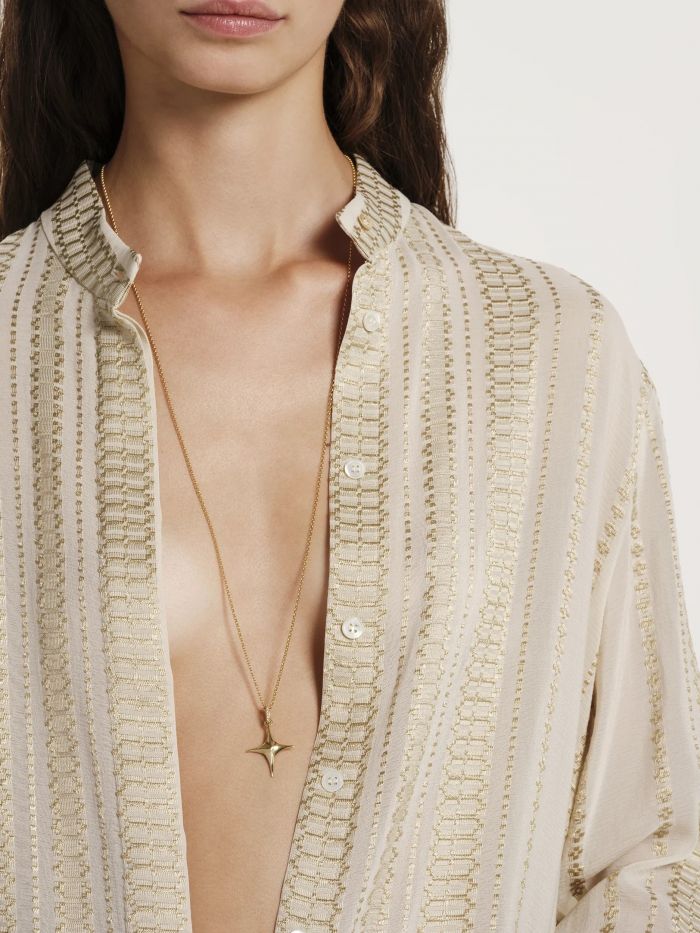 6. Ένα αστέρι από τον νυχτερινό ουρανό που μετατράπηκε σε κόσμημα, από τη Zeus+Dione, για να το φοράς ως μια διακριτική υπενθύμιση του θαύματος. Το κολιέ με τη μακριά αλυσίδα «Asteria» αποτελείται από ένα ασημένιο μενταγιόν που κρέμεται από ένα δαχτυλίδι με λεπτεπίλεπτα ζιργκόν. Οι τέσσερις του όψεις με τις καθαρές ακμές αιχμαλωτίζουν το φως, αντανακλώντας τη φευγαλέα λάμψη ενός αστεριού.