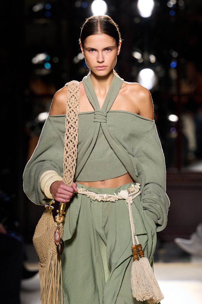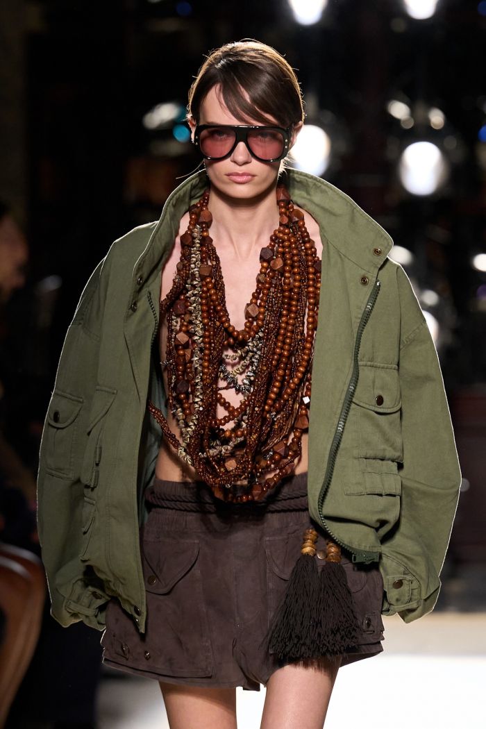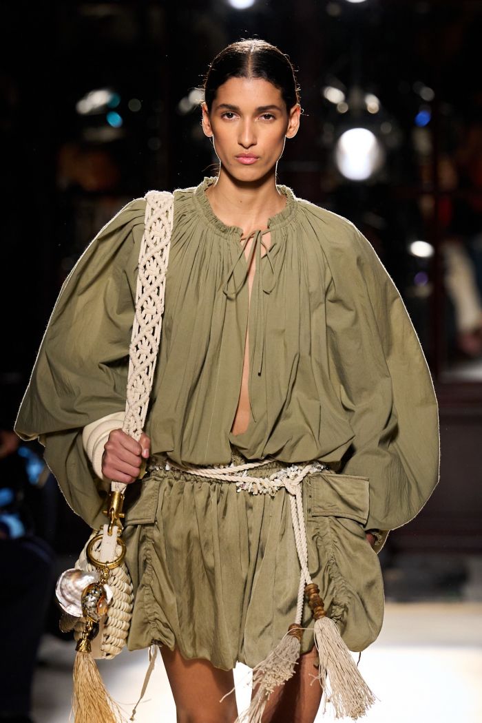 Ο Balmain επαναπροσδιορίζει το χακί, μετατρέποντάς το σε σύμβολο σύγχρονης δύναμης και urban πολυτέλειας. Δομημένα σακάκια, φορέματα off shoulder και military αναφορές δίνουν στο χακί έναν νέο, σχεδόν επιβλητικό χαρακτήρα. Για το 2026, το χακί ξεφεύγει από τη χρηστικότητα και γίνεται απόλυτα fashion-forward.