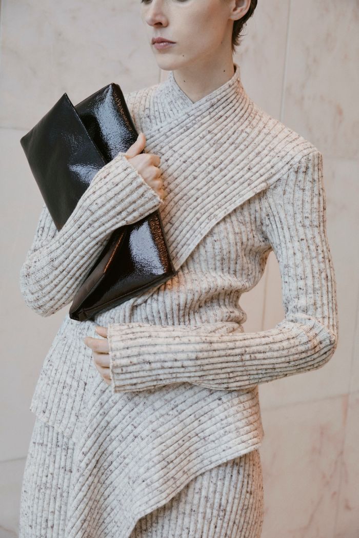 Επιστρέφοντας στην έννοια της πρακτικότητας, οι νέες συλλογές παρουσίασαν μια νέα εκδοχή του clutch. Μεγαλύτερο, σχεδιασμένο για την ημέρα και κατασκευασμένο από υλικά όπως δέρμα και σουέτ. Τα clutch δεν προορίζονται πλέον μόνο για το βράδυ. Είναι πιο μεγάλα, πιο μαλακά και φοριούνται χαλαρά κάτω από το χέρι, συνδυασμένα με τα πάντα, από αυστηρό tailoring μέχρι ανάλαφρα φορέματα.