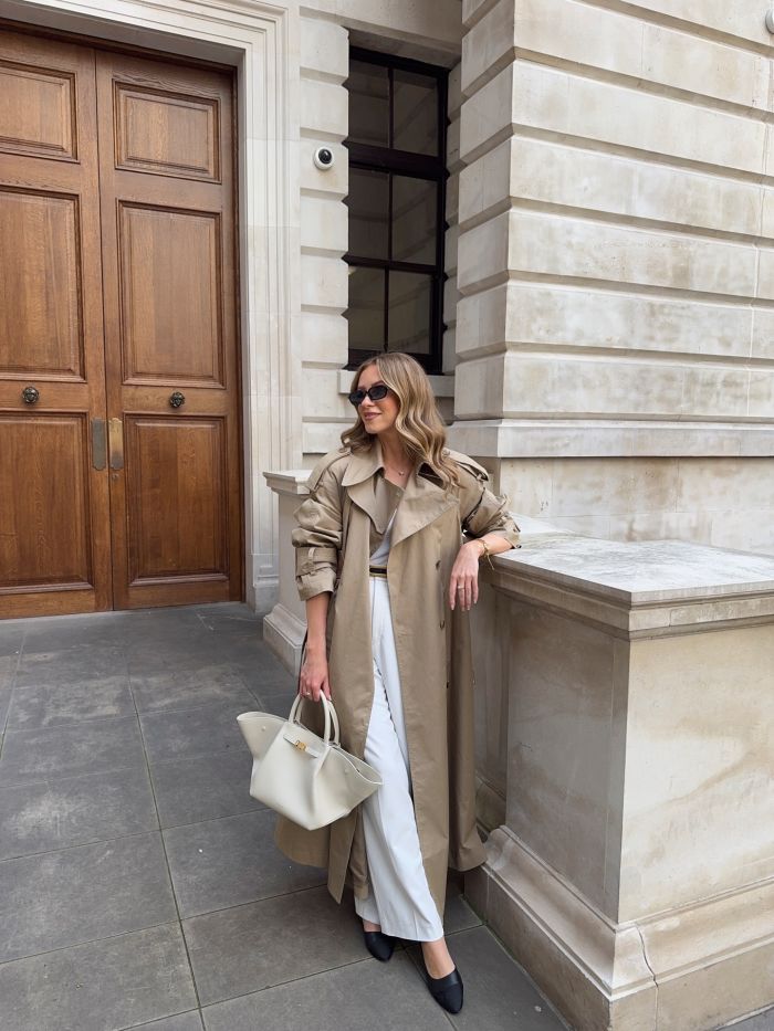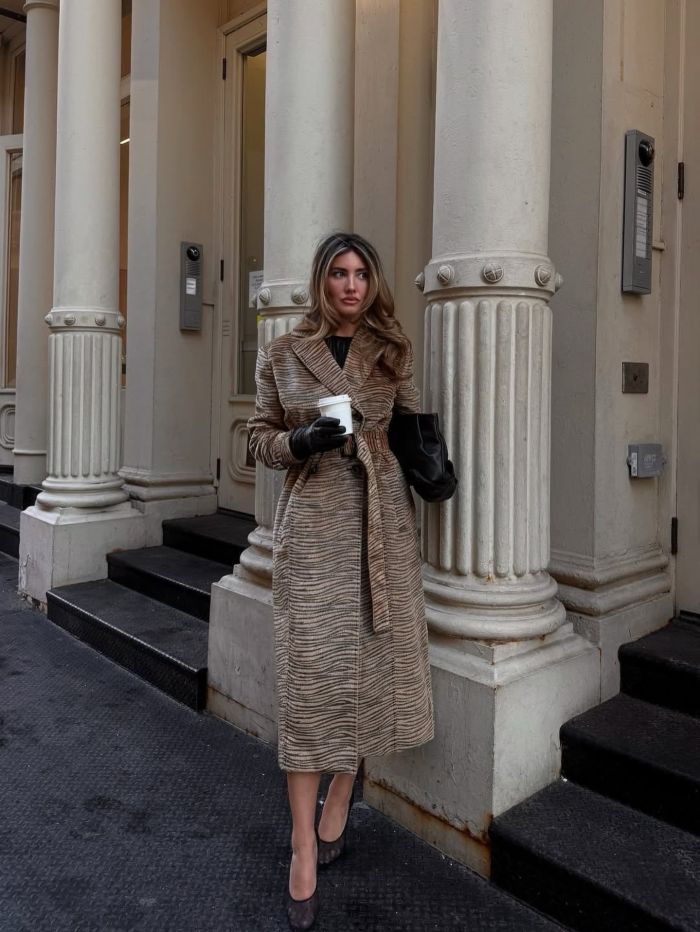 Το styling ενός printed trench coat βασίζεται στην ισορροπία. Δεδομένου ότι το ίδιο το πανωφόρι λειτουργεί ως statement piece, τα υπόλοιπα στοιχεία του συνόλου καλό είναι να διατηρούνται σε πιο ουδέτερους τόνους. Ένα απλό τζιν με T-shirt ή ένα μονόχρωμο σύνολο μπορούν να αναδείξουν το print χωρίς να δημιουργούν οπτική υπερφόρτωση. Η επιλογή λιτών αξεσουάρ ενισχύει αυτή την προσέγγιση, επιτρέποντας στο trench να παραμείνει στο επίκεντρο.